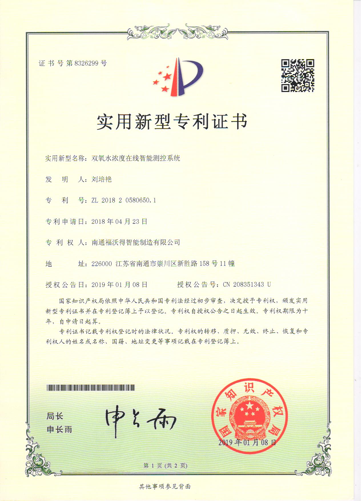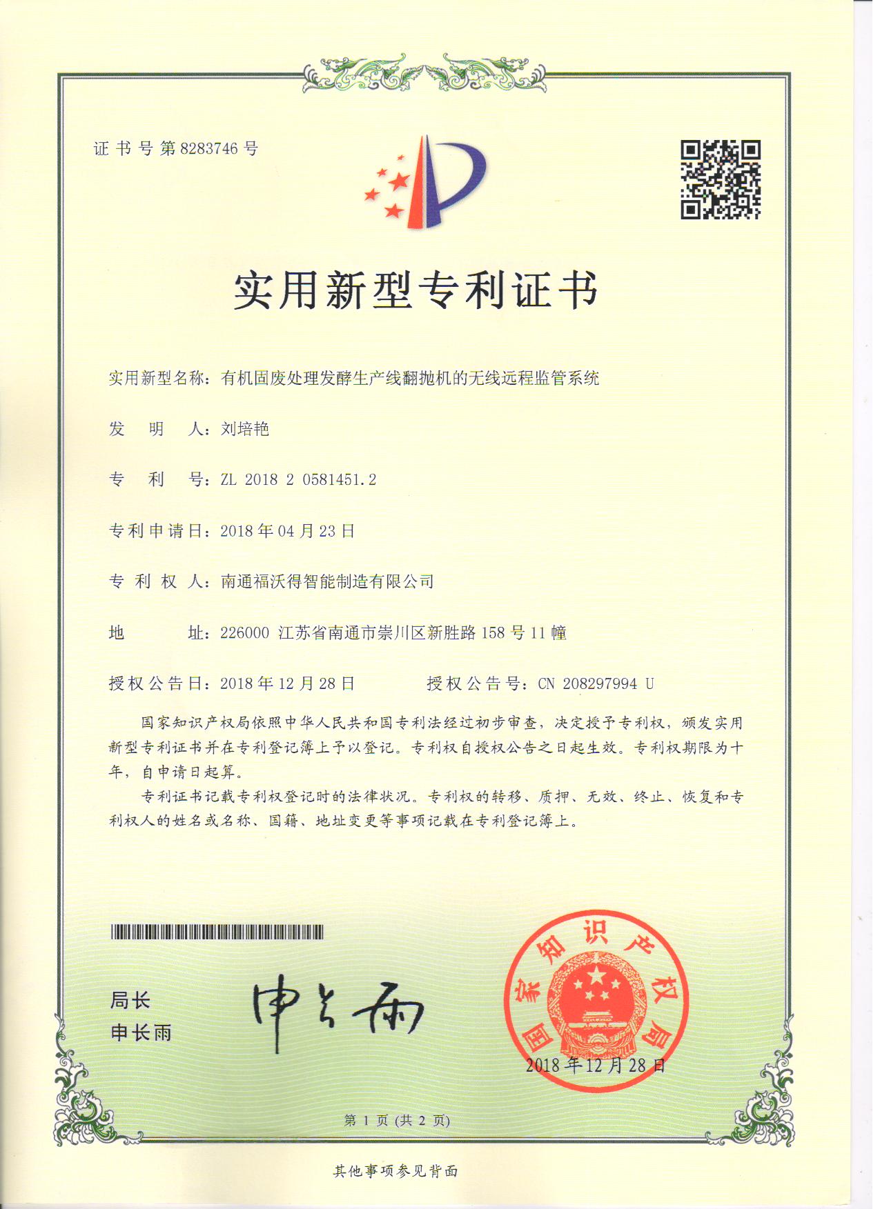 实用新型专利证书