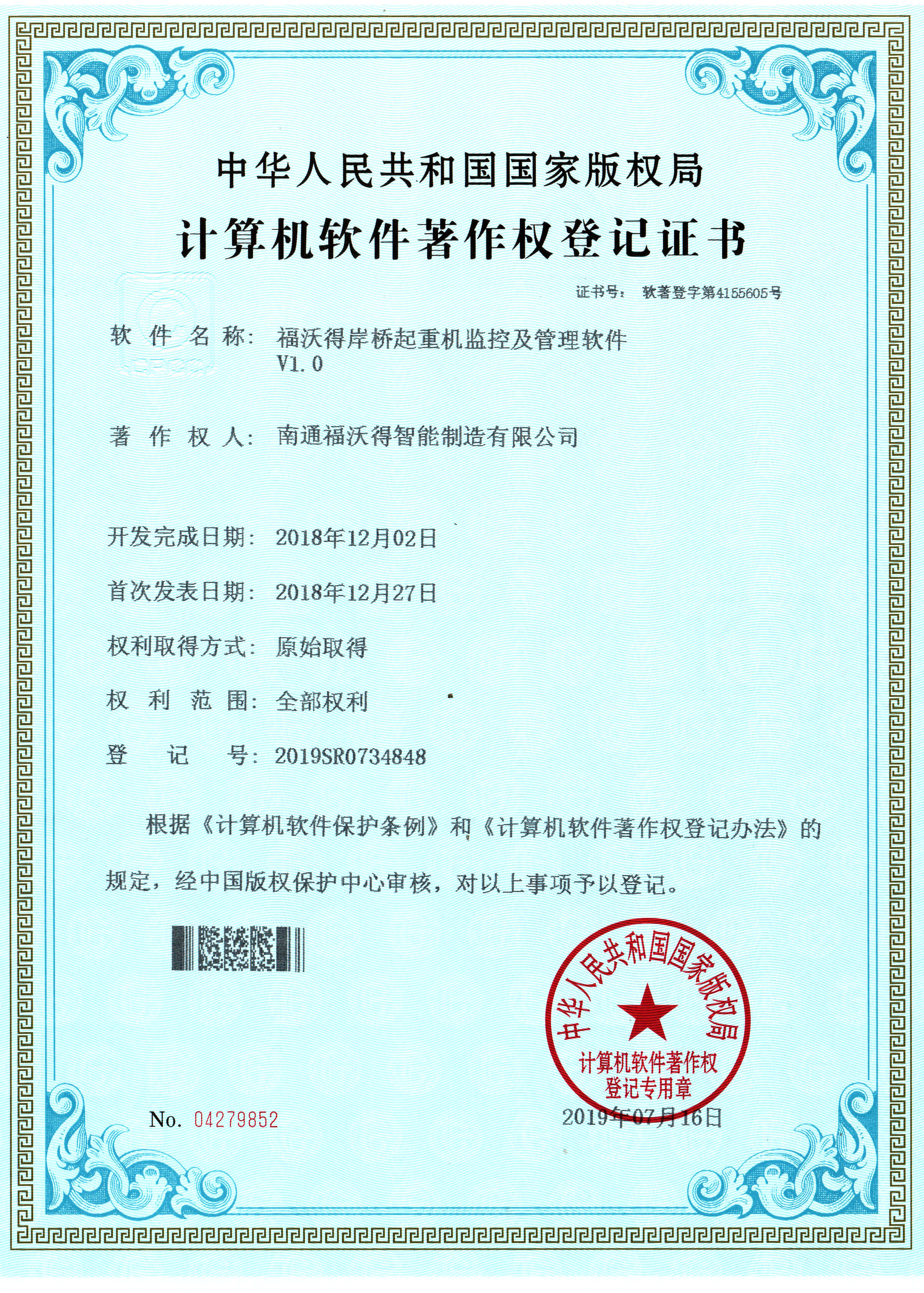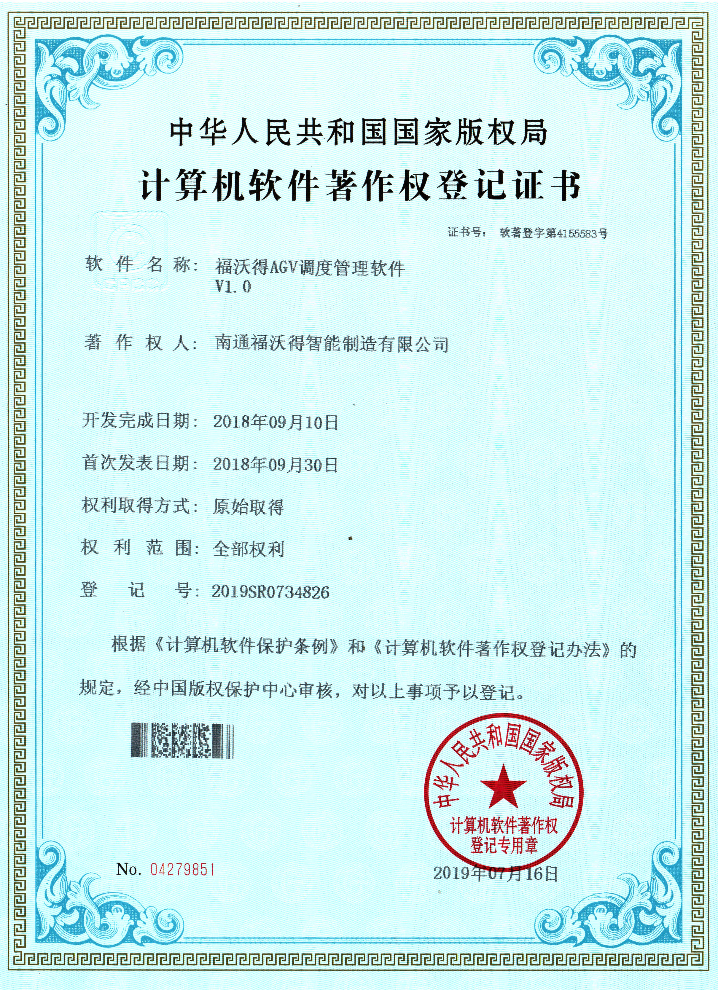 计算机软件著作权登记证书